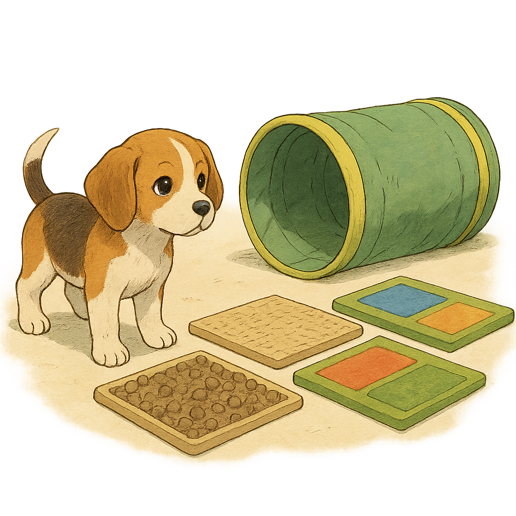 - Jeux de flair : pistes de friandises, boîtes surprises, chercher son nom.